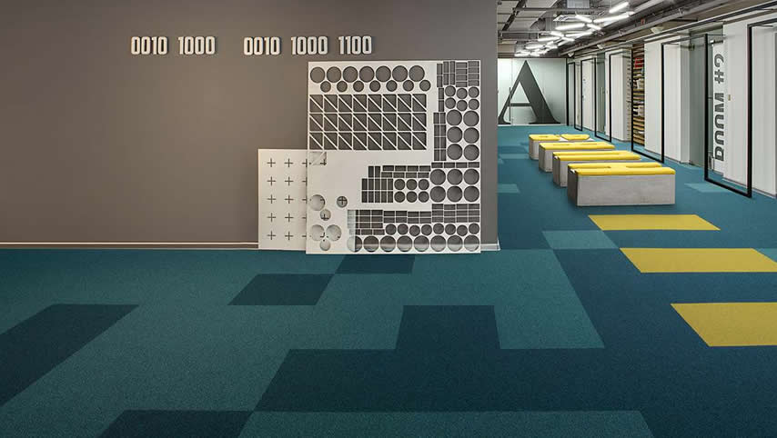 Ofis zemin kaplama olarak karo ve rulo halılar, parke, epoksi, linolyum ve lüks LVT ürünlerde stoklarımızda mevcuttur.